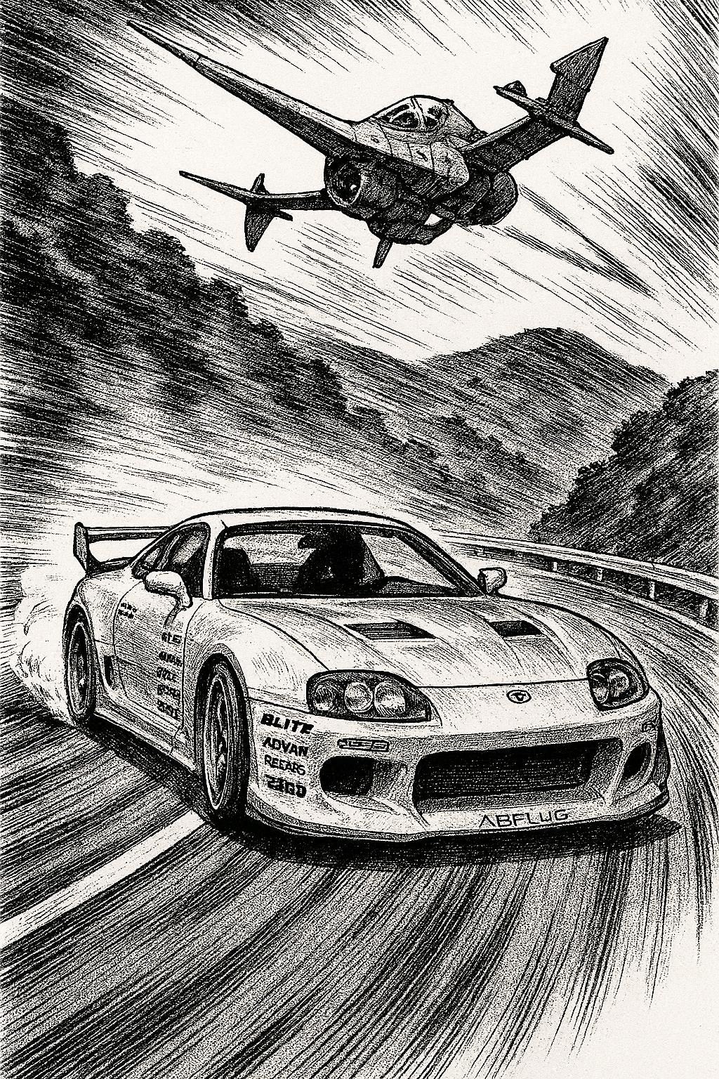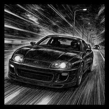 A powerful and award-winning quality classic Super Eurobeat song, It should be in minor key and have a dark tone to it, It is a racing song with themes of bravado and speed, The intro builds atmosphere before breaking into the synthesizer filled Super Eurobeat sabi melody, The song keeps a tone of subtle intensity and does not follow uplifting happy sounding musical patterns, There are crisp electric guitars and punchy bass guitars driving the synthesizer foundations, The slightly gritty male singer sounds right at home in a Super Eurobeat Song, Hi-fi drums and glistening synth stabs layer over a taut bassline, with intricate, clean leads and signature breakdowns, Slick crisp electric guitar riffs accentuate the synthesizer lines, High energy, dry mix throughout, The Chorus has a particularly punchy feeling to it, The song should have a bit of a dark atmosphere about it