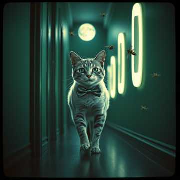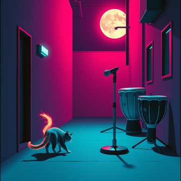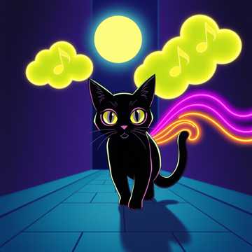 Space, psychedelic, cat, Spanish guitar, sultry voice, cinematic