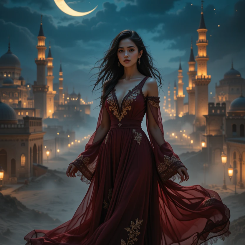 A retro-style Turkish disco track inspired by the 1980s, with driving analog synths, vintage drum machines, funky basslines, and saz-inspired guitar licks, Female Arabic vocals are soulful and ornamented, with expressive melismas and light reverb for vintage texture, Percussion includes darbuka, tambourine, and claps layered over a four-on-the-floor disco beat, Tempo: 120 BPM, Style blends Turkish disco, Arabic folk vocal stylings, and retro synth-pop, Language: Arabic or pseudo-Arabic, Mood: Nostalgic, dreamy, rhythmic, emotional, Structure: Intro – Verse – Chorus – Synth Break – Chorus – Outro Fade