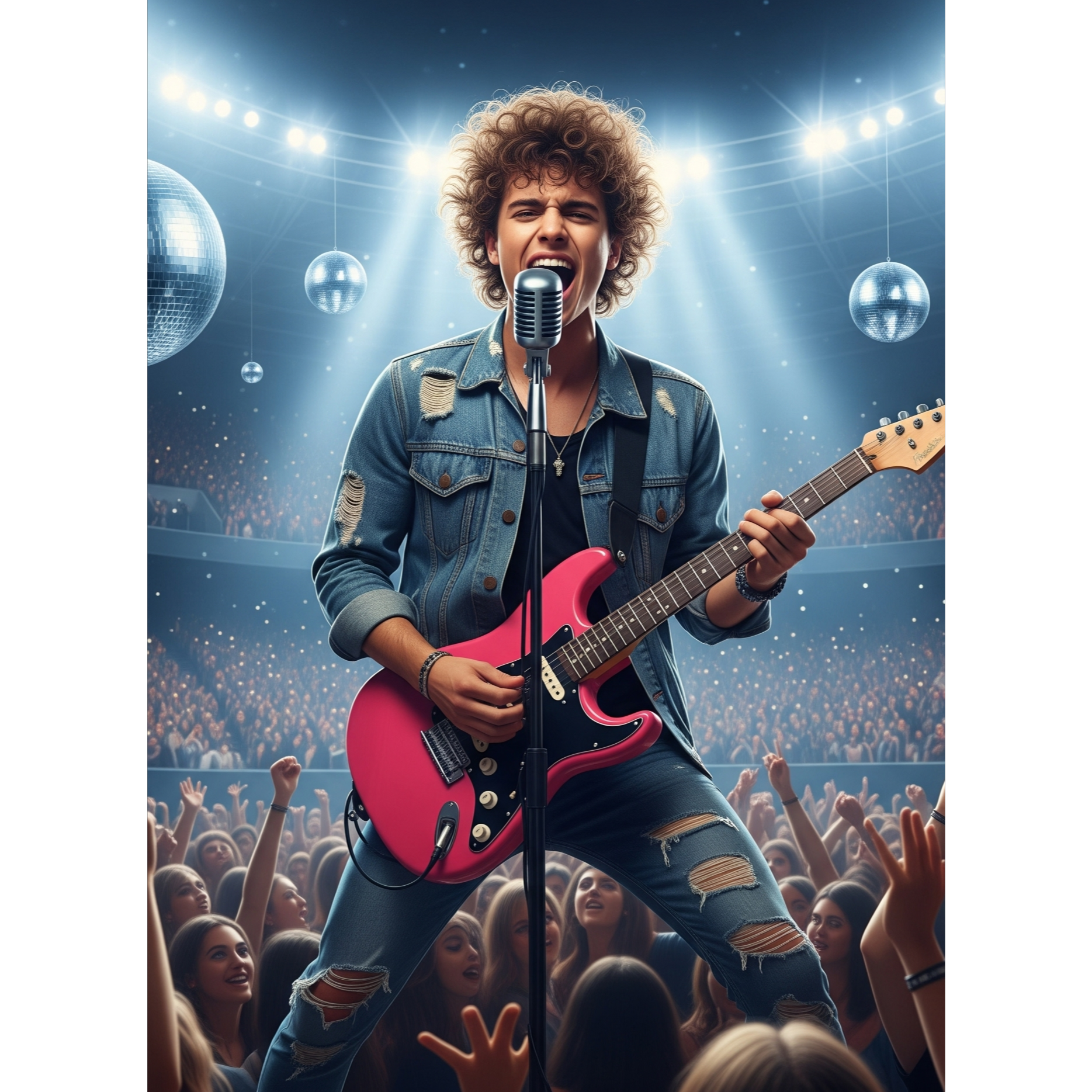 Male vocal in 80s disco-rock style, High lyrical tenor with bright, expressive tone and agile melismas, Wide range (C#2–A5), smooth falsetto transitions, strong breath control, and emotional phrasing with crystal-clear diction, [Backing Vocals: present in choruses, wide stereo, classic 80s style] [Instrumentation: funky rhythm guitars, electric bass, analog synths, live-style drums, occasional brass stabs] [Drums: punchy kick, tight snare, open hi-hats, tom fills] [Guitar Solo: distorted lead, expressive bends, classic 80s delay and chorus FX] [Production FX: gated reverb on snare, light tape saturation, stereo chorus on synths] [Mood: energetic, nostalgic, danceable, slightly romantic] [Mastering: RMS loudness ~ -7 LUFS, balanced mix, retro analog character]