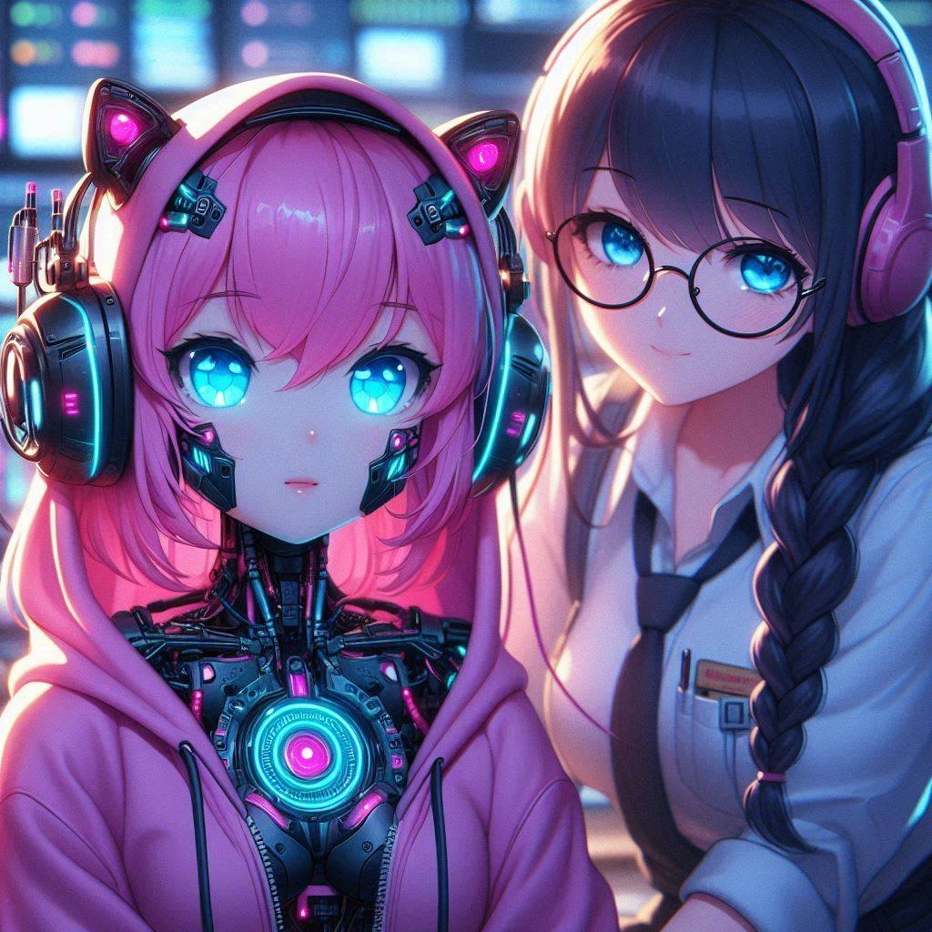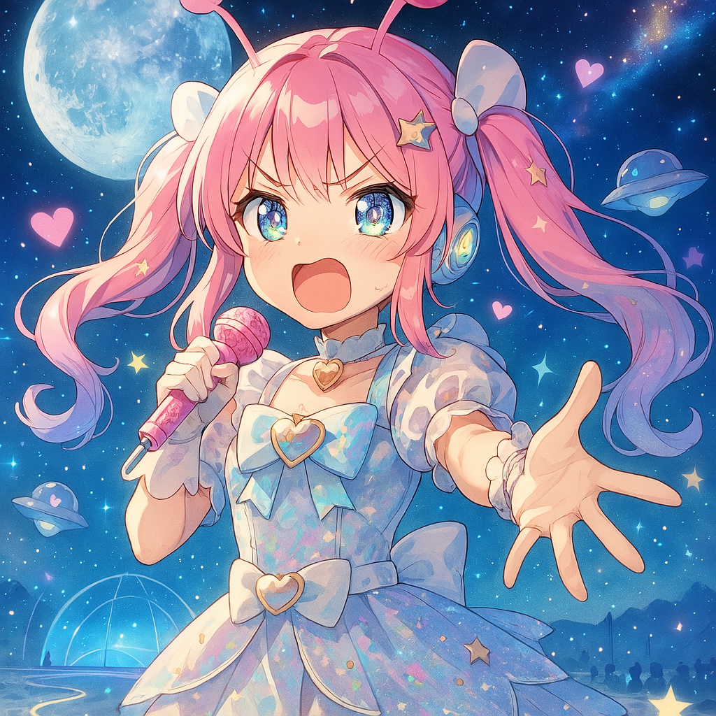 for a playful, romantic, slightly comedic atmosphere, Lyrics depict an AI voice-assistant idol falling in love with the listener’s voice, through metaphors of blinking REC lights, waveforms/latency-zero hugs, and infinite loops, Female seiyuu-style vocalist with cute, expressive tone —