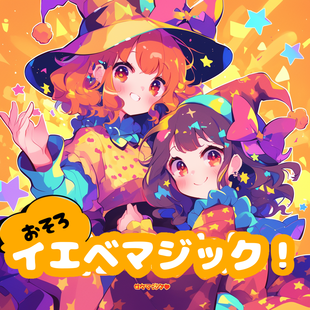 Hyper Denpa Song, ultra-fast J-pop remix, energetic karaoke theme with magical-girl flair, Twin vocal duet (female × female), 200 BPM, bright electro synths, glittering chiptune arpeggios, and distorted “pico-pico” drum fills, Explosive key changes and over-the-top emotional delivery with comedic anime-style call-and-response, Lyrics celebrate carefree fun, love, and karaoke chaos through sparkly magic imagery and dialect catchphrases (“ばいっ!” “テンアゲ!”), High-pitched kawaii tone with bouncy phrasing and exaggerated energy; auto-tuned harmonies swirl into a final “Love Beam” climax