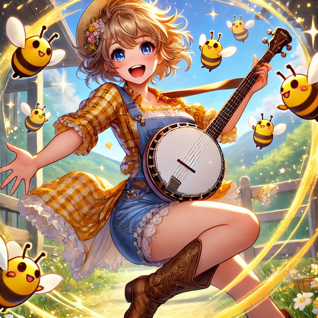 Denpa song, blue grass, female tender girl vocal, anime, kawaii, camp fire chants, mountain music, country, acoustic, Jodeln