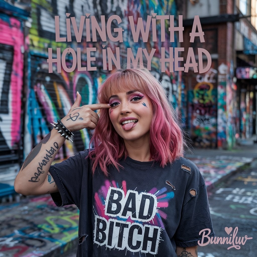 An unhinged gothic-industrial rock track layered with gritty distorted guitars, pounding mechanical drums, and lo-fi synth noise, Female vocals swing from fragile whispers to manic screams, channeling raw desperation and violent femininity, The arrangement shifts between breakdowns and eruptions, building a claustrophobic, theatrical frenzy, ‑Atmospheric Reverberation, ‑Reverb, ‑Noise, ‑Static, ‑Muddiness, ‑shimmer, ‑robotic vocals, ‑excessive autotune, ‑vocal clipping, ‑glitch artifacts, ‑muddy lowend, ‑overcompression, ‑overprocessed reverb, ‑delay washout, ‑flat dynamics, ‑stale chorus FX, ‑timing drift, ‑synthetic breath artifacts, ‑mono bleed, ‑harsh highend, ‑vocal phasing, ‑frequency masking, ‑metallic resonance, ‑unnatural tuning transitions, ‑distorted stacking, ‑background noise, ‑room hiss, ‑resonance buildup, ‑phase cancellation, ‑pumping artifacts