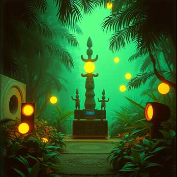 Jungle, deep bass, beatbox support, melodic piano interlude, didgeridoo, jungle old school elements, various drums support, Surround sound effects, stereo effects, spiral and waves sound effects, fx sounds effects, dynamic effects, echoing, jungle sounds effects, 8D effects