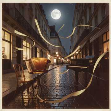 french chanson, chamber pop, female lead vocals, grand piano arpeggios, brushed snare, upright bass, string quartet, clarinet countermelody, accordion stabs, plate reverb, tape saturation, close mic vocals, rubato intro, midtempo waltz, bittersweet nostalgia, theatrical cabaret, 70s French pop, analog warmth, dynamic crescendo, edm