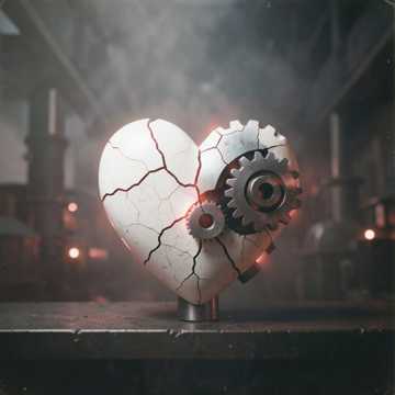 Slow-burning industrial ballad in French, male vocals, Sparse mechanical pulses and detuned pads in the verses, like a distant factory at night; chorus opens with wide, distorted synth swells and heavy, side-chained drums, Use glitchy, metallic percussion and filtered noise risers to mirror shifting emotions, Reverb-heavy, intimate vocal in the start; stack harmonies and subtle vocoder doubles in the hook to emphasize the clash of tenderness and rage, Bridge strips back to a ghostly drone before the final, crushing chorus, ballad, industrial