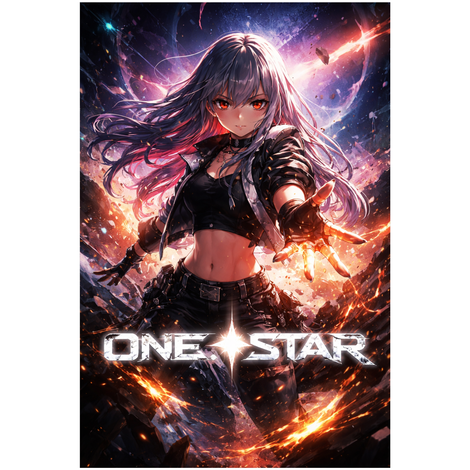 A distinctive female J-ROCK / alternative anime vocal with a unique tonal contrast: naturally soft and breathy in the low register, almost fragile and whisper-like, but capable of explosive, raw power in the chorus, Slight husk and emotional grain in her voice, not polished pop-clean, Mid-range carries a sharp edge with subtle vocal fry when pushing intensity, High notes are piercing and desperate rather than pretty, Influences feel like modern J-rock, anime OSTs, and underground alt-rock, Occasional controlled voice cracks for emotional impact, Experimental delivery includes spoken-word phrases, half-sung lines, sudden dynamic drops, and layered harmonies that feel unstable and dramatic, Lyrics alternate between Japanese and English, The voice feels human, imperfect, rebellious, emotional, and cinematic — built for dark anime themes, inner conflict, and star-chasing obsession