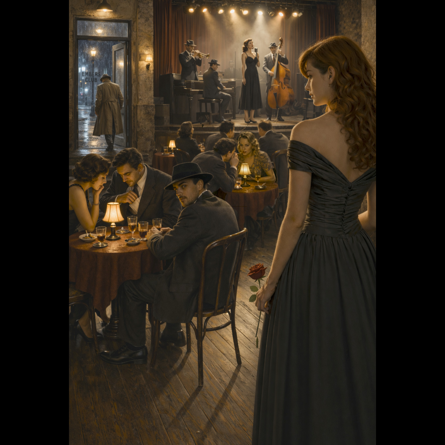 1940s torch jazz in a late-night New York club atmosphere, intimate noir jazz mood with a steady gentle swing around 75 BPM, expressive female vocal, small jazz ensemble featuring upright piano, walking upright bass, light brush drums, muted trumpet and soft tenor sax, warm vintage recording with natural room reverb, sense of quiet longing, trust and inner resolve, emotional depth carried gently without dramatic intensity, with natural breathing space and slight pauses that let the feeling unfold
