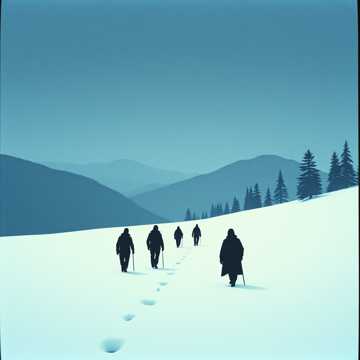 Мрачная славянская фольклорная баллада, Низкий мужской хор, балалайка, медленные барабаны, холодная зимняя атмосфера, звук ветра в горах, Таинственно, зловеще, как старая легенда у костра