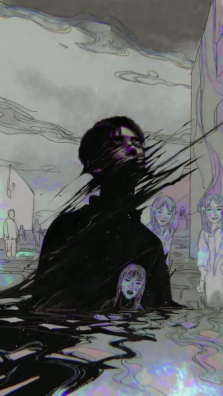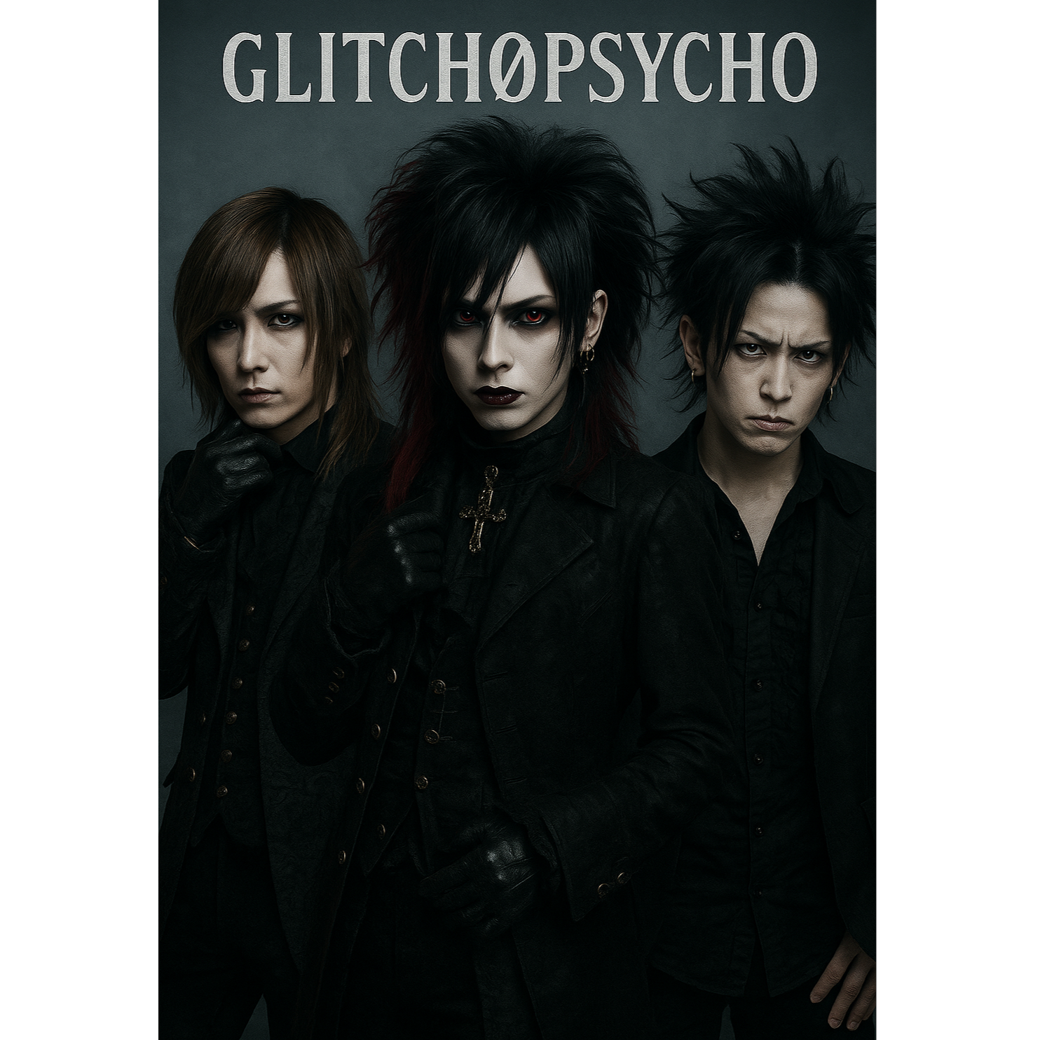 A dark and heavy and glitch Japanese visual kei rock song with distorted guitars, aggressive drums, and deep bass, The song features unsettling sound effects such as whispers, chains rattling, reversed audio glitches, and eerie electronic noises, The vocal style alternates between harsh screams and haunting clean singing with abstract and poetic lyrics, The mood is intense, mysterious, and atmospheric, evoking feelings of obsession, madness, and despair, The song structure includes an ominous intro, explosive choruses, a chilling bridge with sparse instrumentation, and a gradual noisy outro, No artist names included