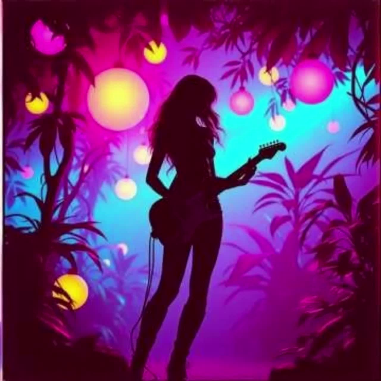 High-energy disco rock track at 145–155 BPM with a solid four-on-the-floor dance beat, Very punchy bass and drums, tight and aggressive electric guitar tone, Guitar riffs lead the song from start to finish, locking in with the kick drum, Not funk, more straight rock attitude with a neon-club vibe, Male&Female Japanese double lead vocal, cool and confident, singing catchy party hooks about a night party and owning the stage with her guitar, Big, wide chorus with crowd-pleasing “sing along” feel, verses slightly stripped back but still driving, Modern, polished mix for a packed dance floor, powerful low-end, bright guitars, and club-style energy