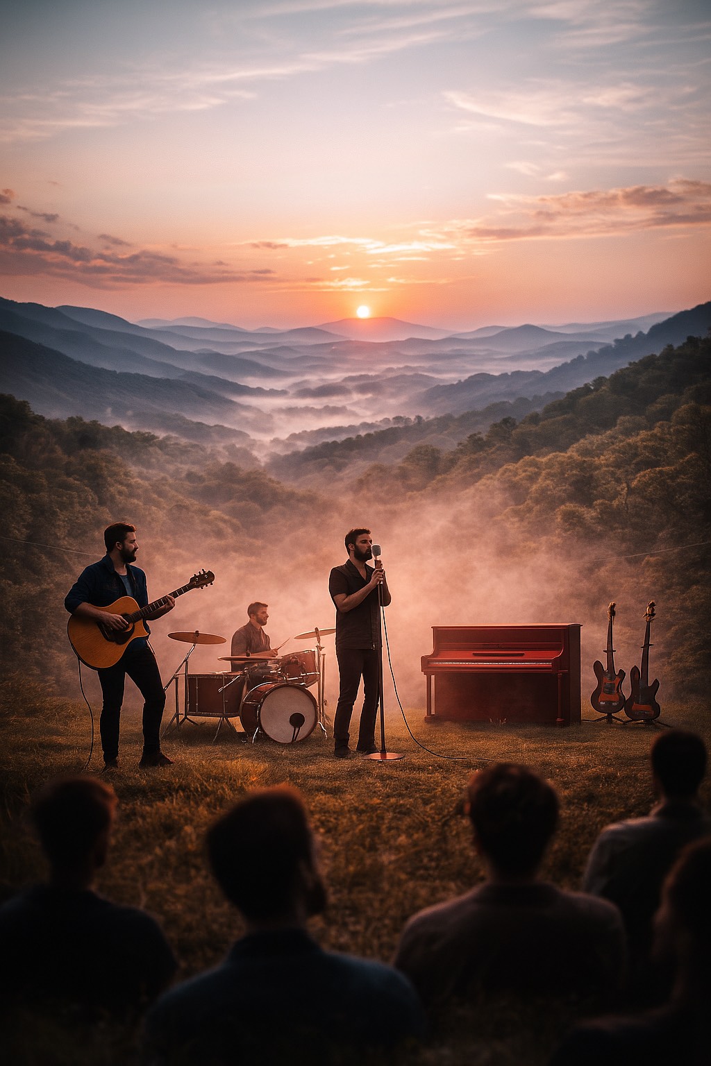 Soft, soulful, atmospheric rock inspired by Audioslave’s “I Am the Highway, ” Clean electric guitars with shimmering delay, gentle ambient pads, and warm bass, Drums should not be removed—give them a soft, steady presence in the verses with light hits, then gradually increase intensity as the vocals rise, The lift should feel emotional and spacious, not heavy, The drums should swell only during the louder lines marked with (!) in the lyrics, tightening into a stronger heartbeat groove without becoming aggressive, Male vocal in a soulful Chris Cornell–style tone: warm, breathy, aching, with controlled rasp, The bridge and the yelling sections marked with (!) should break open with more force, while the rest of the song stays soft, meditative, and highway-like, Keep the mix airy, spiritual, and cinematic—never a rock ballad, Tempo around 70–80 BPM