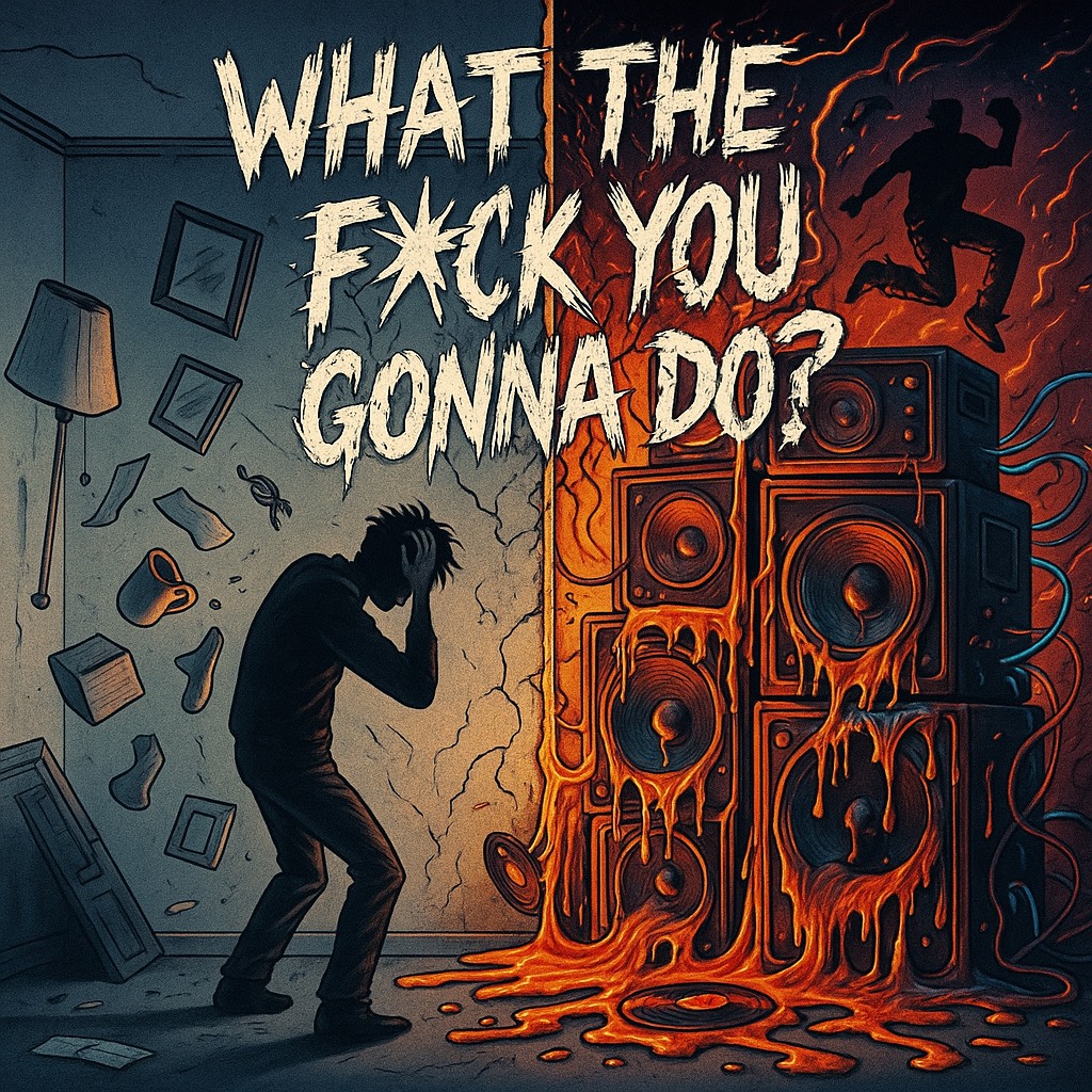 Aggressive rap-rock in the style, no screamo, spoken-rant attitude, swagger, heavy groove, sarcastic tone, Instrumentation: Tommy Lee–style metal drum slam, big punchy toms, distorted nu-metal guitars, slap-bass accents, vinyl scratch FX, gritty rap-rock synth stabs, Vocal Style: Lead vocal: spoken rant + rhythmic rap delivery, confident, pissed-off, sarcastic, Secondary vocal: deep Timberland-style baritone for the bridge [“when I wake up I won’t stop…”], Occasional crowd-yell ad-libs [“yeah!”, “let’s go!”, “fuck that!”], Energy: Explosive, rebellious, humorous, chaotic, but clean enough to understand every word, Structure: Short intro → rant-rap verse → deep-voice bridge → huge chant-chorus → outro hit, Tempo: 120 BPM (perfect for rap-rock bounce and mosh-pit energy), Mix: Crunchy guitars, sub-heavy kick, slap-room snare, filtered vocal moments for tension, Mood:Defiant, fed up, energetic, zero-filter attitude