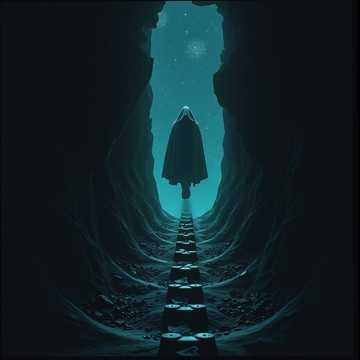Ambient cinematic, ethereal choir, long-form evolving pads, distant cosmic hum, shimmering glockenspiel, faint radio static, whispered male spoken word, grand, mysterious, 60 bpm