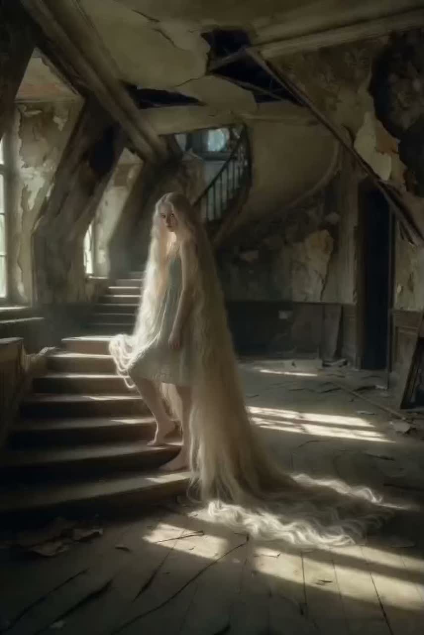 Dark ambient production with a tragic, slow‑tempo minor‑key melody ( ~60–70 BPM), Texture: Shadowy low‑frequency ambience featuring organic room‑tone (creaks, air) and distant gated clock chimes (high‑pass filtered), Harmony: Gothic choir pads (slightly detuned, long release) playing minor chords (i, iv, vi) to reinforce the tragic mood, Vocals: Close‑mic’d female lead — starts dry and whispered (verse), with subtle reverb and delay; on the hook, layered with 3–4 harmony tracks in minor thirds and sixths, Rhythm/Bass: Sparse sub‑80 Hz pulse (slow attack, long decay) plus metallic percussion (cymbal swells, processed springs) to build tension, Chorus: Heavy convolution reverb (cathedral impulse) on bells and choirs; low choirs with sub‑bass boost (~40–60 Hz), Bridge: Minimal processing — ambient breathing (close‑mic’d) and a low drone (sine wave, pitch‑shifted choir pad) with slow LFO modulation, Final Refrain: Double‑tracked vocal, heavily reverbed (8–10