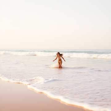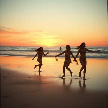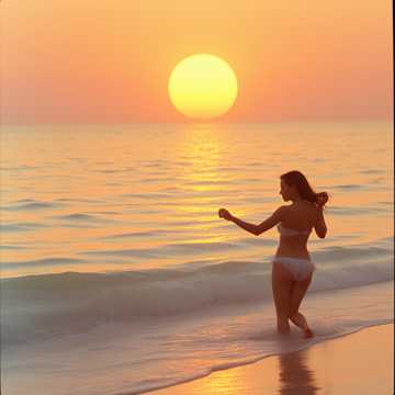 High-energy, playful pop song in 1960s Japanese J-pop style with driving disco rhythm, inspired by The Peanuts' duet in "Vacation of Love"—poetic summer flirt in German with enhanced rhyming metaphors, internal rhymes, and alliterative outro of nymphs by the sea, secrets like oases and pink lotus bliss, featuring two female voices in harmony, Instrumentation: pulsating synth bass with wavy pulse, four-on-the-floor kick + bright snare/hi-hat for beach drive, arpeggiated synths with bell chimes and light strings for sunshine, clean electric guitar with chops and enka-style fills, Vocals: two young females in German—lead bright and coquettish (like Itsuko, with vibrato on internal rhymes like "kühn und küssend"), second in harmonies (like Yumiko, with echo and whispers); duet unison in verses, octaves/thirds in pre-chorus and chorus for anthemic hook on "Ferien der Liebe, " outro with alliterative fade-out, Structure: dynamic verses building tension, instrumental breaks (guitar solo + synt