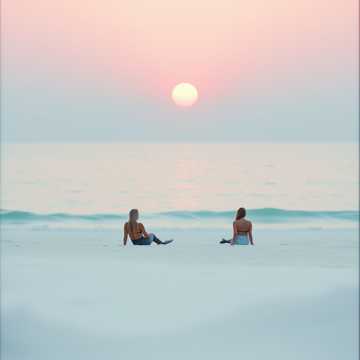 1960s Japanese retro pop, in the sweet and dreamy style of The Peanuts, Two Female vocals in duet in close harmony, soft and elegant, with vintage orchestration (strings, vibraphone, upright bass, light jazz drums), Gentle, romantic, nostalgic summer mood, The melody flows gracefully like a love song in an old Japanese movie, Mono vintage sound, airy reverb, 1960s Japanese pop show style, cheerful and playful, like The Peanuts singing on a summer stage, Bright two emale vocal duet, synchronized harmonies, with retro orchestration (brass section, vibraphone, light bossa nova drums, strings), Sunny, joyful, playful atmosphere of summer vacation by the sea, Retro radio broadcast feel