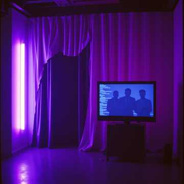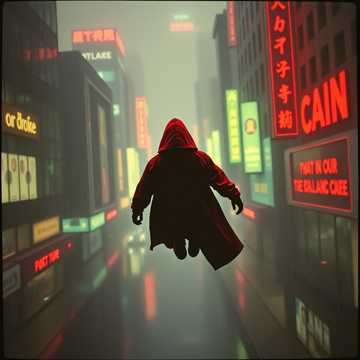 A witchcore, noir-trip-hop, dark pop song carried by dusty drum loops and detuned Wurlitzer keys, with bowed bass pulling tension through each measure, The vocalist is a young woman in a crimson hood moving through a city that behaves like a living creature, her voice a thread drawn through its watching silence, She sings in breathy, spellbound murmurs, half chant and half confession, holding calm like a blade, Verses stay tight and intimate while choruses bloom into wide harmonies that multiply her presence, The mood coils in feminine dread, quiet wrath, and the charged stillness of someone claiming the night as her own