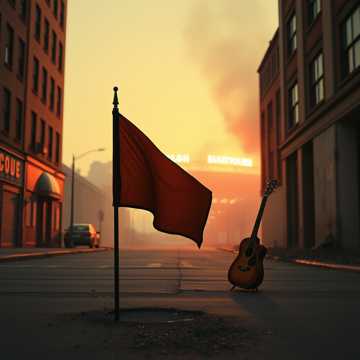 Acoustic guitar Bands and Vibrato, Minimalistic tapping of fingers on the guitar, steady tempo, Deep male vocals there is weight, age and a quiet challenge in the voice — low, even, as if singing through dust and smoke