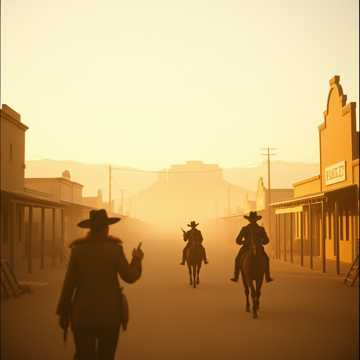 Intermittent guitar riffs, whistling, western metal, western hard rock, male vocals, ‑female vocals