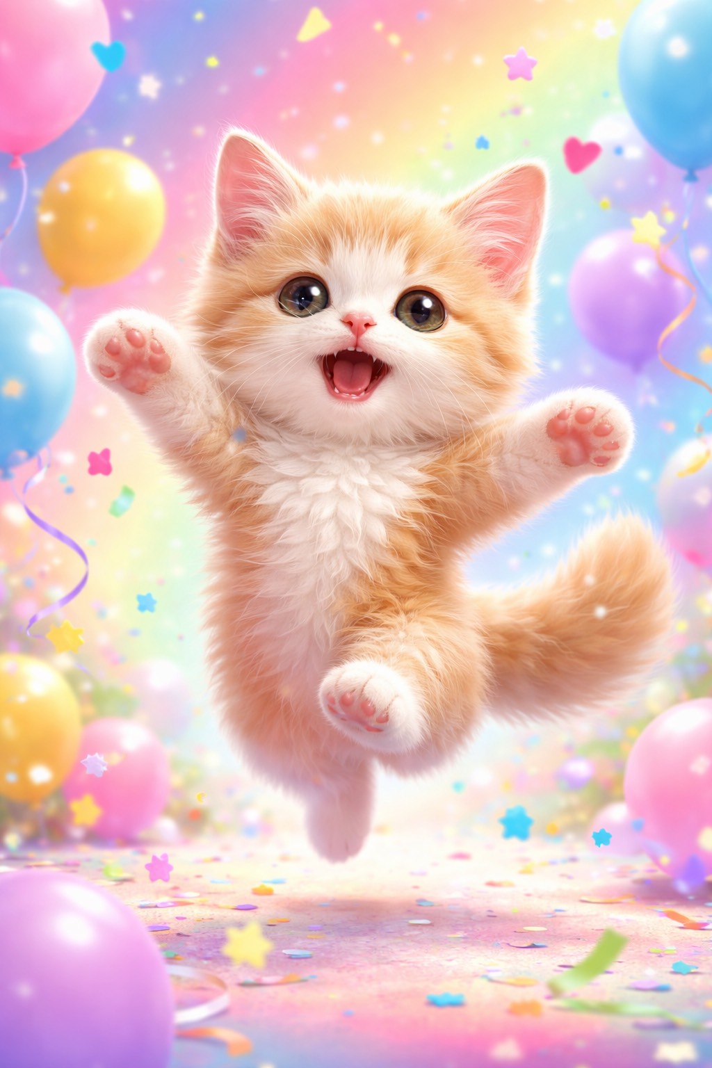 Upbeat Dance Pop / Happy Party Pop / 128 BPM / Bright Four-on-the-Floor Kick / Bouncy Funk Bass / Cheerful Synth Leads / Claps & Handclaps / Whistle Hook / Playful Cat Meow Adlibs / Energetic Female Vocal / Smiling Tone / Big Build & Explosive Chorus / Kid-Friendly But Club-Ready / Viral TikTok Hook / English Only