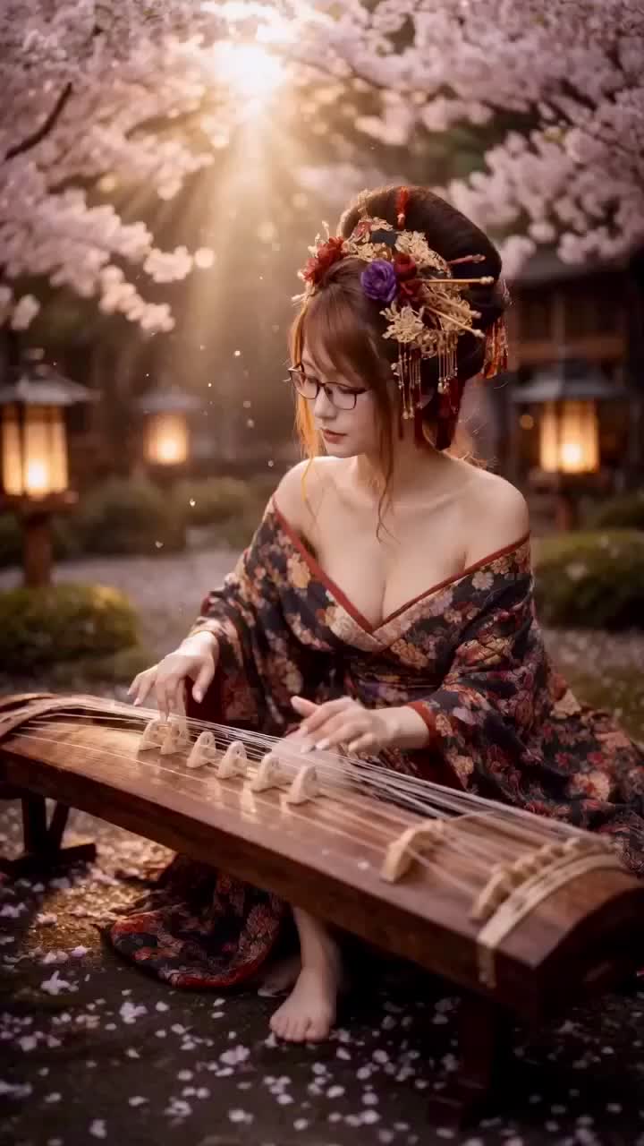 Symphonic Hyper Japanese Dance Trance Opera(Featuring Koto Lead and Ambient-Inspired Vocal Textures)**Japanese koto leads rhythm and melody, played live by the vocalist to convey emotion, All instruments revolve around its lyrical tone, fusing traditional Japanese beauty with a trance-opera structure filled with angelic feeling, Female vocals alternate between clean expressive tones and sustained falsetto with soft vibrato accentuating emotional peaks in sync with the koto’s phrasing, The voice remains light, angelic, resonant, floating above trance pulses in a theatrical space, Ambient vocal layers and breathy harmonics surround the melody adding atmosphere and depth, Instruments:koto(lead), wadaiko(drums providing rhythm and low-end), synthesizers for ambient and trance textures, Each part supports the koto’s emotional momentum, balancing grace and energy, Structure:160–190BPM with sharp transitions—koto breaks, falsetto lifts, emotional choruses, Traditional tension merges with operatic grandeur