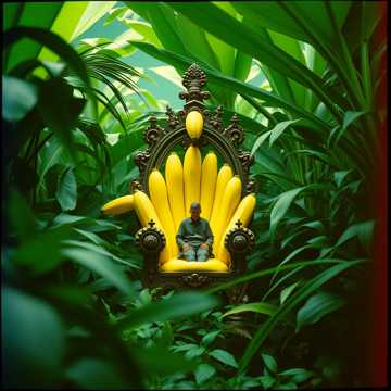 This track opens with sparse jungle ambience and subtle bongo rhythms, setting a hypnotic tone before a minimalist techno pulse emerges, Deep house basslines rumble beneath sharp, syncopated drum and bass patterns that evolve with each drop, The vocals are sparse and chant-like, delivered with a rhythmic monotone that loops and builds tension, The chorus—“bow down… to the banana king”—echoes with layered reverb, becoming a mantra over a rolling wave of tribal percussion and shifting house grooves, As the track progresses, elements phase in and out with surgical precision—glitchy hi-hats, detuned synth stabs, filtered low-end swells—creating a constantly shifting but tightly controlled soundscape, The outro strips everything down to a lone bongo rhythm and fading whispers, leaving a primal afterglow