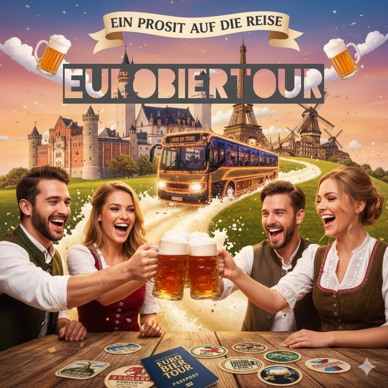 This Schlager punk track kicks off with punchy guitars and a four-on-the-floor beat, interwoven with bright synth stabs and energetic handclaps, Jovial brass fills pepper the pre-chorus, while the chorus amplifies with gang vocals and raucous, driving rhythms