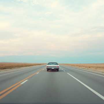 Cinematic Americana/post-rock: tremolo baritone guitar, brushed drums, steady “65-mph” bass ostinato, airy lap-steel and road-wind foley, Arc: sparse ignition → open-sky lift with harmonies → horizon fade, bittersweet and hopeful