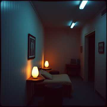 Avant-garde horror score, Metallic percussion, string harmonics, bowed cymbals, distant rumbling drones, Uneasy and atonal, Progression: sparse intro → swelling dissonant textures → crescendo with cluster chords, timpani rolls → sudden collapse into dripping water echoes and ghostly whispers → unresolved outro, Atmosphere of dread and isolation