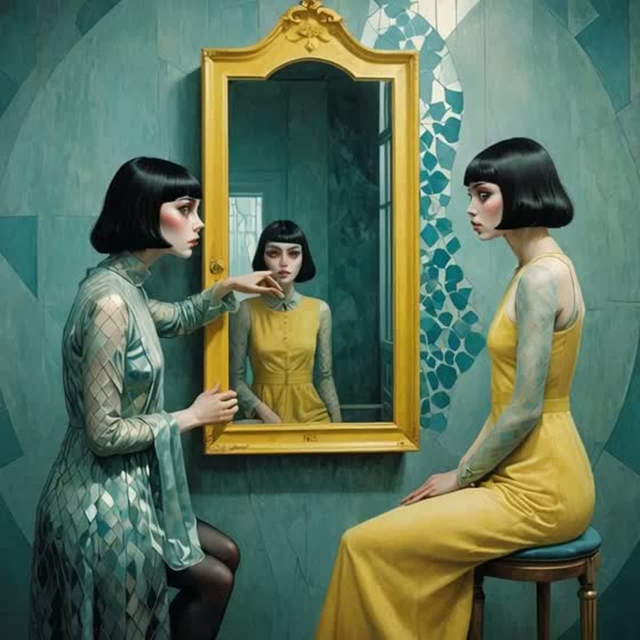 This trip hop and chamber pop track opens with swirling ambient synths and hypnotic female vocals weaving between mantra-like and melodic motifs, Layered choirs loop trance-like harmonies, while sparse whispers add depth, Instrumental breaks dissolve into avant-garde, psychedelic swells, sustaining a glamorous, dreamlike repetition with lush textures and gradual, immersive builds