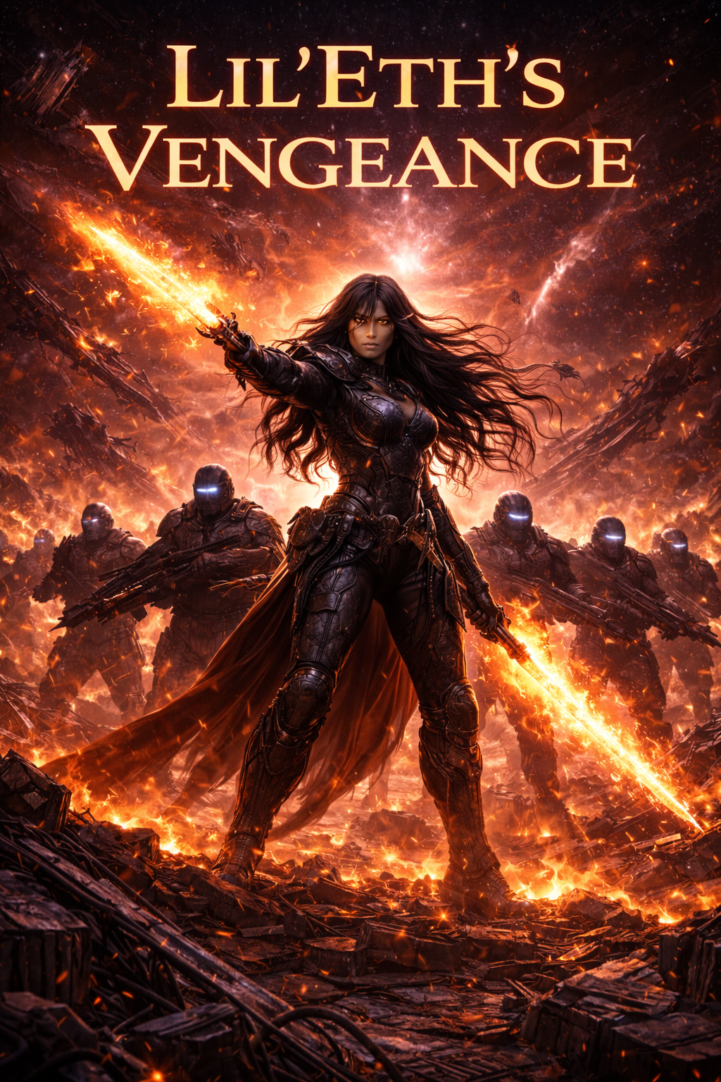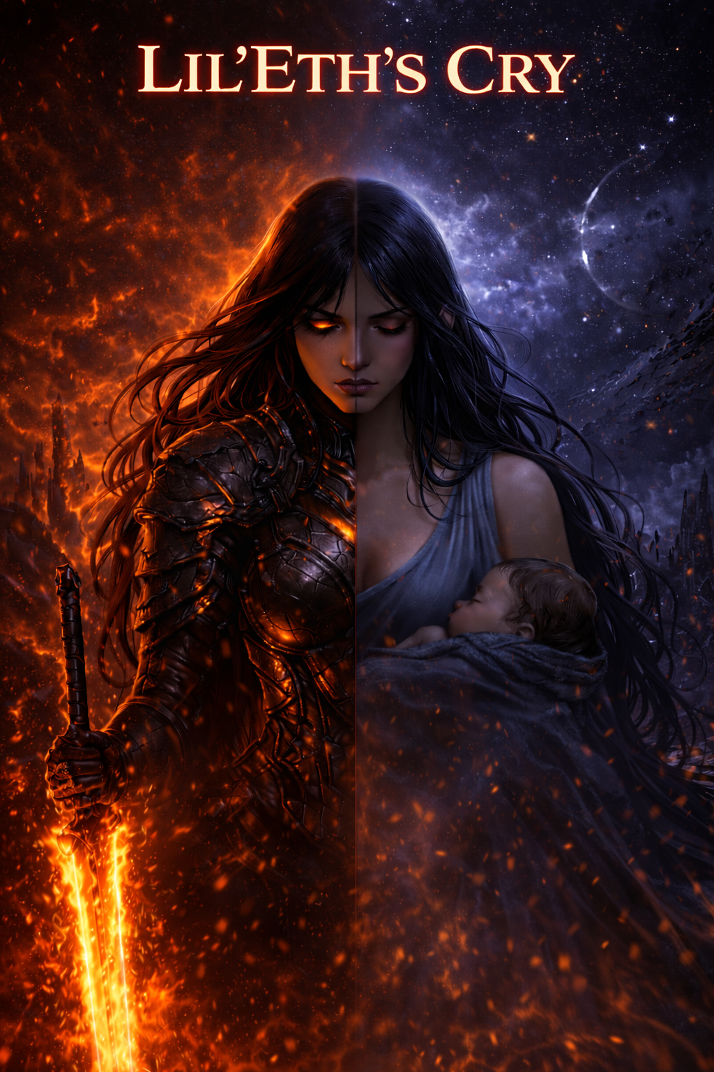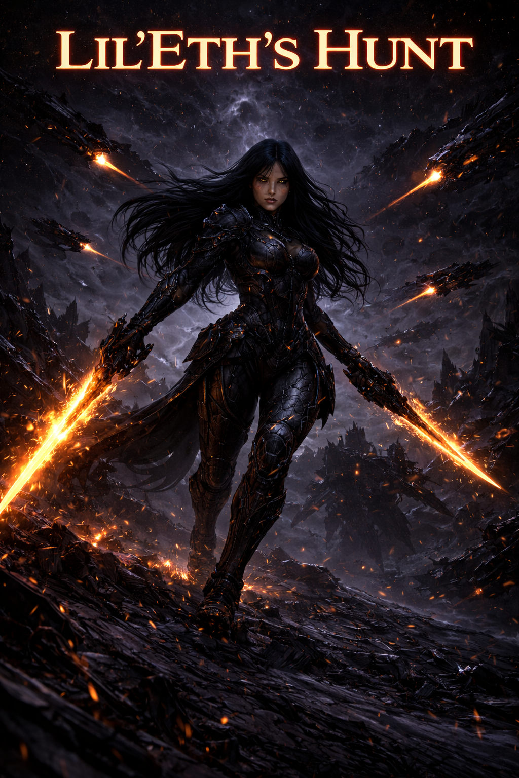 a dark, first-person ballad of vengeance and relentless pursuit, A female vocalist drives the story with cold intensity, shifting between measured narration and bursts of fury, The song moves steadily like a predator on the trail: verses build tension, choruses soar with her oath, and bridges heighten suspense before plunging back into relentless momentum, Instrumentation emphasizes a sense of space and isolation, with pulsing beats, sharp accents, and layered atmospherics evoking the void she traverses, Every line carries weight — the hunt is precise, merciless, and fueled by the memory of stolen children, The unresolved outro leaves the pursuit ongoing, maintaining a grim, haunting tension