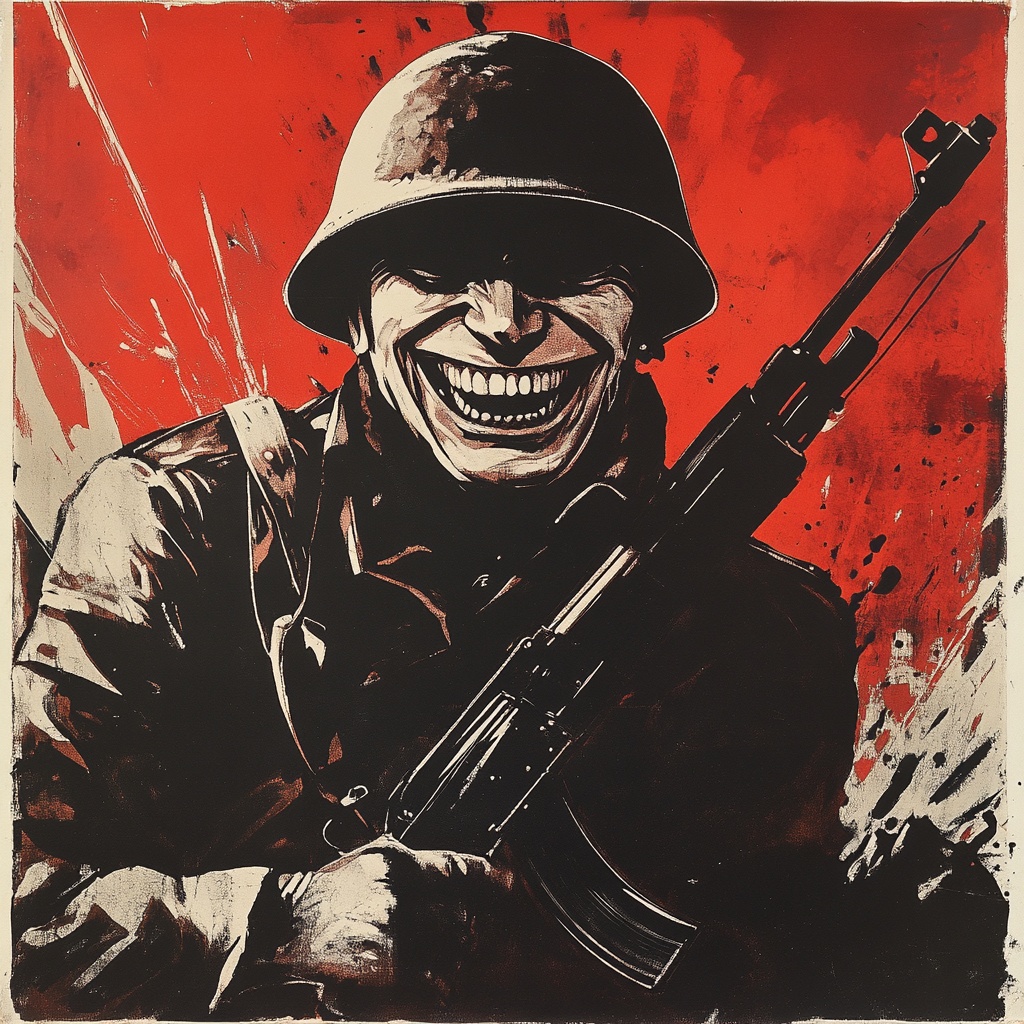 guerilla rock, military march, dark, martial industrial, military percussion, male vocals, glavelly vocals, militant americana, snare drums, boot stomps, military cadence, grimy basslines