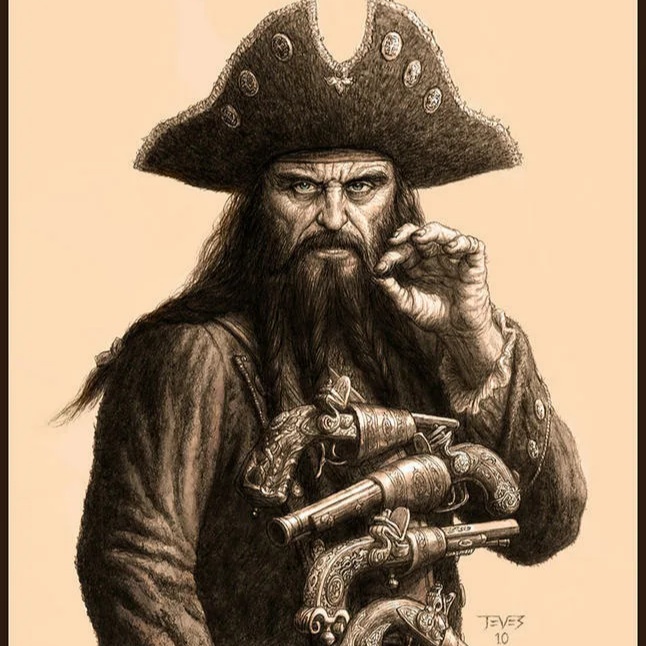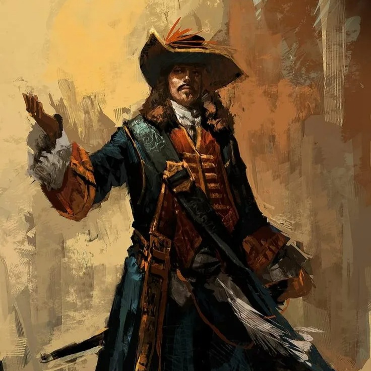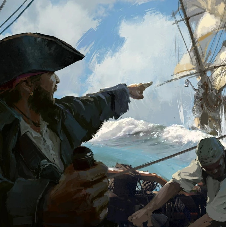 An energetic pirate marine rock track kicks off with rhythmic electric guitar riffs, layered with funky bass, accented by snare, barrel drums, and bold percussion, Rich woodwinds and buzz horns add maritime color, while violin and flute bring folk drama in melodic breaks, Acoustic and tambourine-filled breezy intros give way to stormy electric organ or accordion in bridges, Epic choruses soar with skeletal vocals or choir, creating adventure and freedom