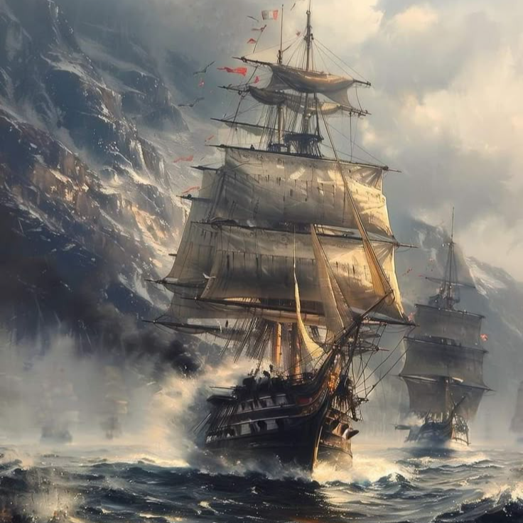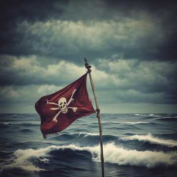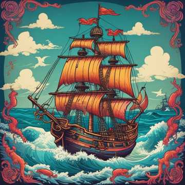 This epic symphonic rock piece fuses pirate folk metal and marine folklore, Strings lay a grand orchestral foundation, delivering sweeping melodies and dramatic flourishes, Acoustic and electric guitars interlock for driving rhythm and pirate-inspired hooks, Deep drums, tam-tam, and tambourine evoke stormy seas, while sea or wooden flute weaves haunting motifs atop the mix, Atmospheric electronics, wind, and wave sounds heighten the oceanic mood, Salty, metallic male vocals lead, bolstered by powerful choruses and layered choir effects to maximize the epic scope