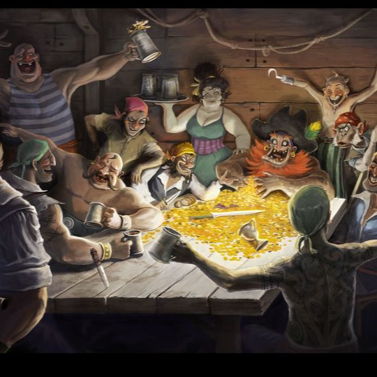 Folk-pirate rock, A powerful, fun pirate tune, Acoustic guitar, Electric guitar, Banjo, Violin, Percussion (guillotine, tambourine), Tambourine, Bass guitar, choral inserts in the chorus, Dark folk