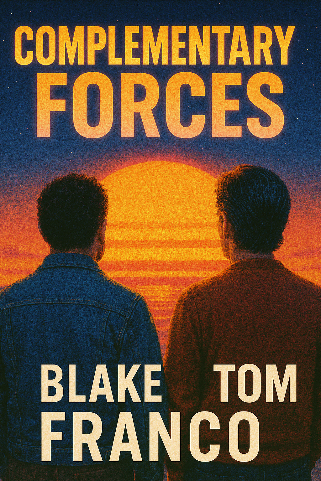 80s cinematic gospel fusion with big emotional impact, Opening: slow atmospheric synth pads, soft choir hum, gentle reverb, Verse 1 (Blake): warm reflective male vocal, 80s electric piano chords, subtle bass, neon-tinged pads, restrained drums, Pre-chorus: rising choir harmony, bright synth arps, gated 80s snare, Chorus: FULL gospel energy—handclaps, powerhouse choir, big layered male leads, soaring synths, dramatic tom fills, shimmering pads, Verse 2 (Tom FrancO): deeper emotional male vocal, Miles Davis–style muted trumpet echoes, electric bass walking softly, warm tremolo guitar, Bridge: stripped cinematic moment—spoken lines from Blake and Tom over soft choir and distant piano, Final chorus: explosive gospel wall-of-sound, 80s drums, wah-wah guitar accents, trumpet flourishes, huge layered harmonies, Tone: uplifting, brotherhood, cosmic truth, complementary forces aligning