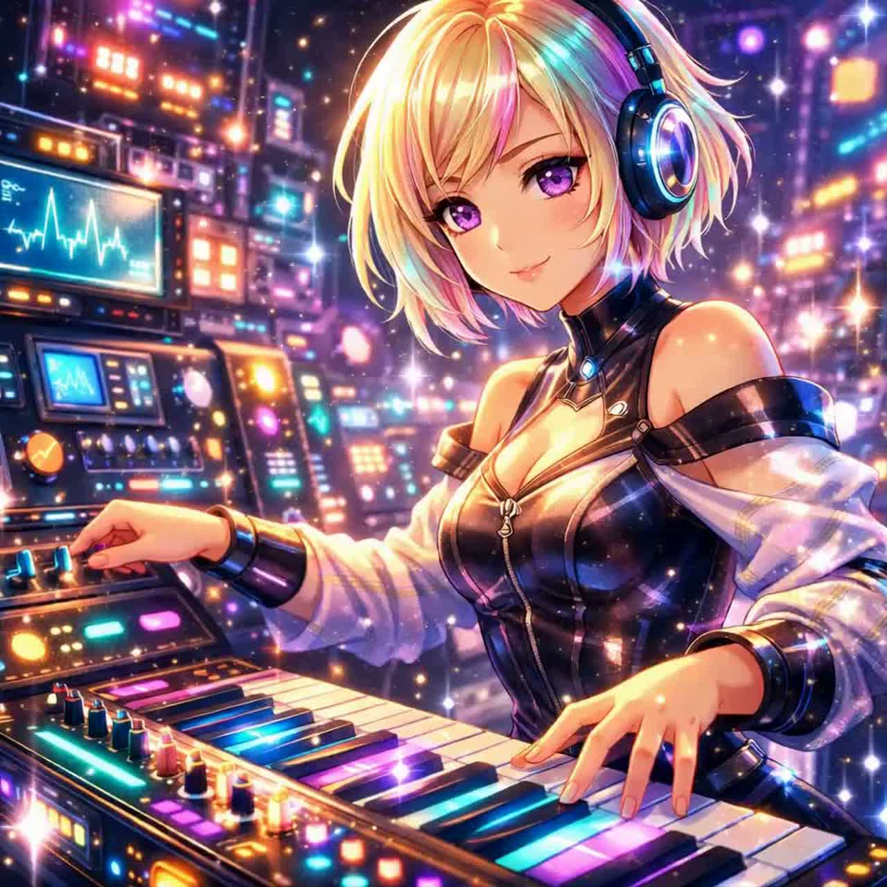 breathy female vocals, glitch punk pop synth pop, up-tempo, up-beat, unison synth glitch breakdown