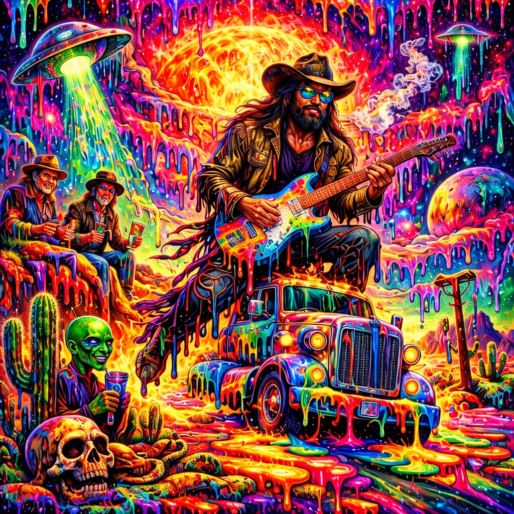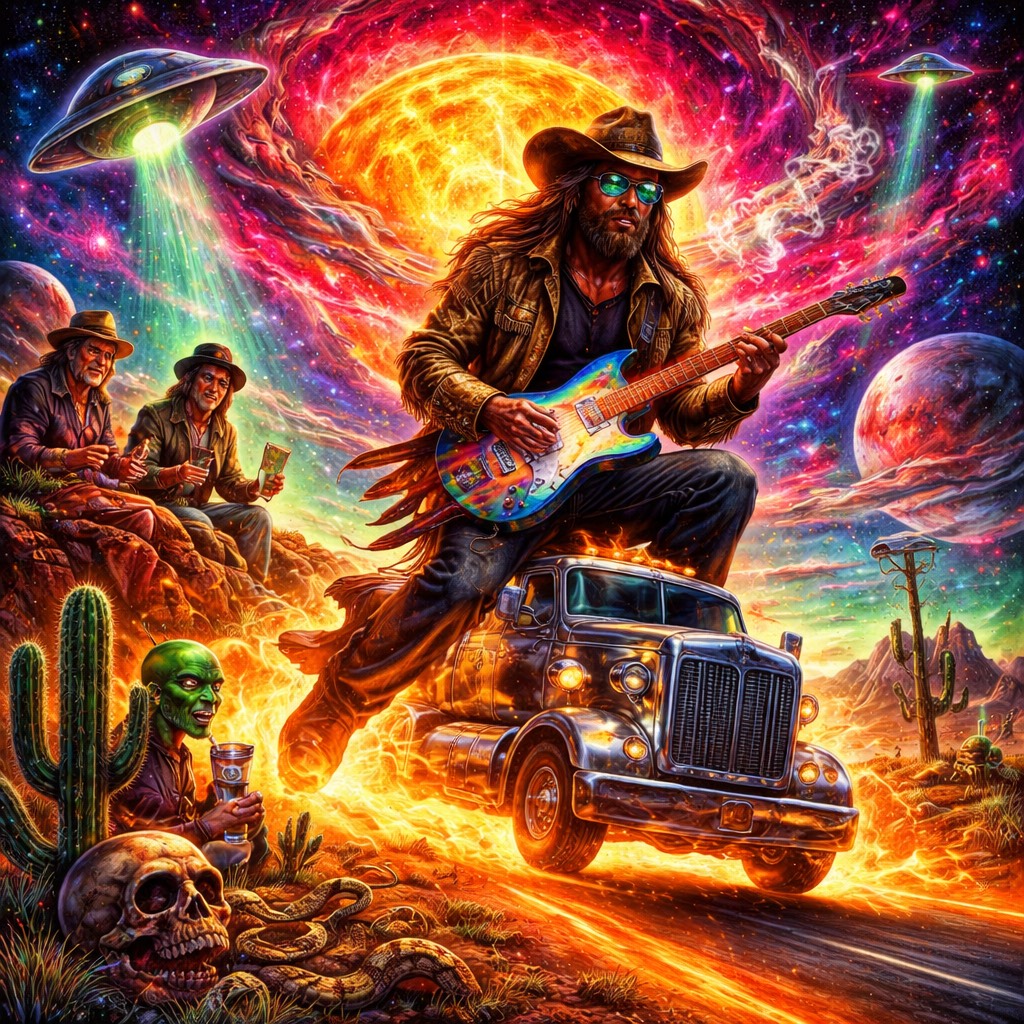 Outlaw Acid Country is what happens when Waylon Jennings steals a UFO, Willie Nelson hotboxes it, and Pink Floyd wires the dashboard into a steel guitar amp.