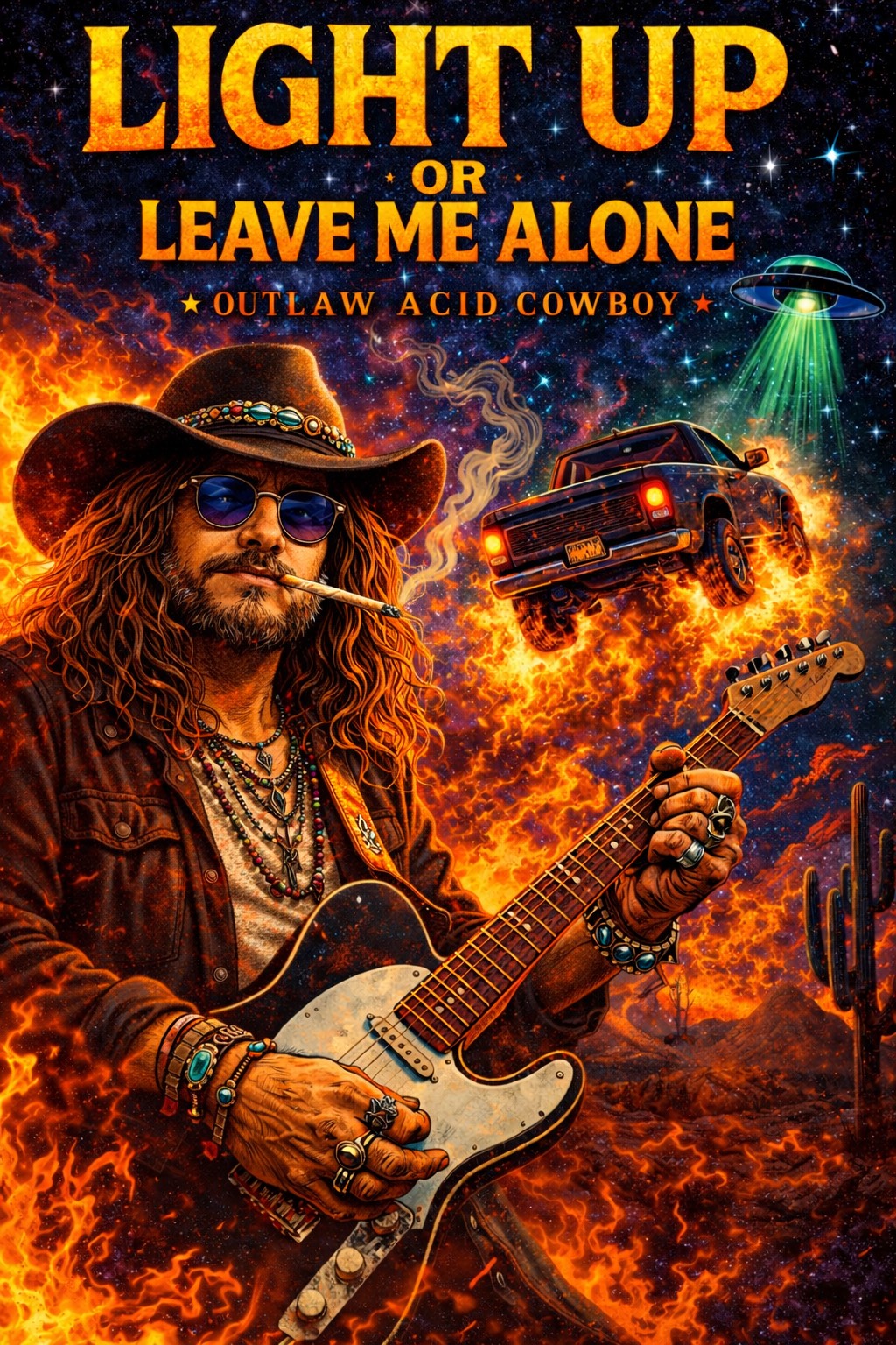 Confident, gritty, rebellious, slightly trippy but grounded in outlaw swagger, Sounds like waylon fronting a psychedelic southern rock band under desert stars, ⸻