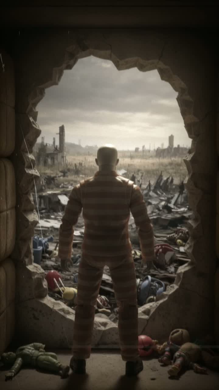 Create an aggressive experimental track blending punk, trip-hop, and hip-hop metal with theatrical dynamic shifts, Tempo ≈ 128 BPM, irregular and explosive groove with tempo changes, Drums: broken beats, dry snare, and chaotic fills, Bass: distorted, over-compressed, heavy midrange pulse, Guitars: staccato riffs with sudden stops; occasional chromatic slides for tension, Textures: glitch bursts, mechanical ambience, crowd noise, whispers, Vocal: male spoken-screamed voice alternating calm narration and manic outbursts; rhythmic phrasing, theatrical tone, no melodic singing, Lyrics: All for This — a poetic explosion about humanity’s efforts, vanity, and doom; all creation and destruction ending in a grand, absurd nothingness, Mood: chaotic, prophetic, absurdly tragic, fast, and violent; evokes a sense of cosmic irony and theatrical collapse, ‑– clean pop or hard-rock vocals, ‑– orchestral instruments, ‑melodic harmonies, ‑or auto-tune, ‑– long reverb or polished mix, ‑– EDM synths, ‑cinematic scoring, ‑or melodic choruses