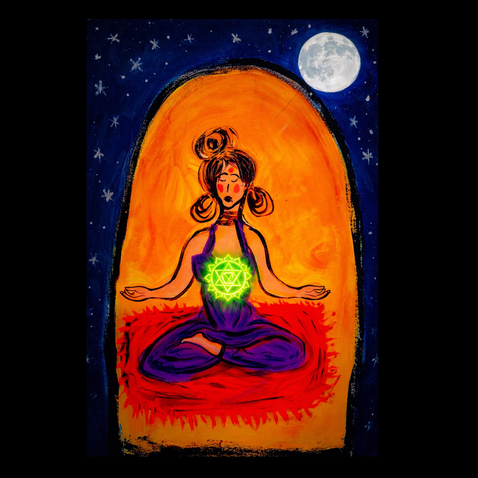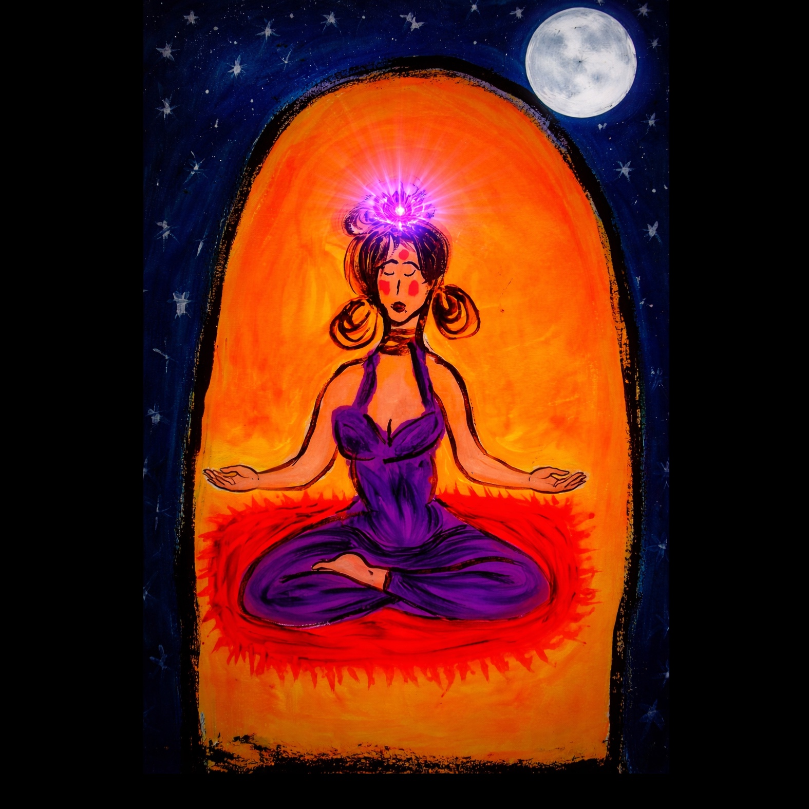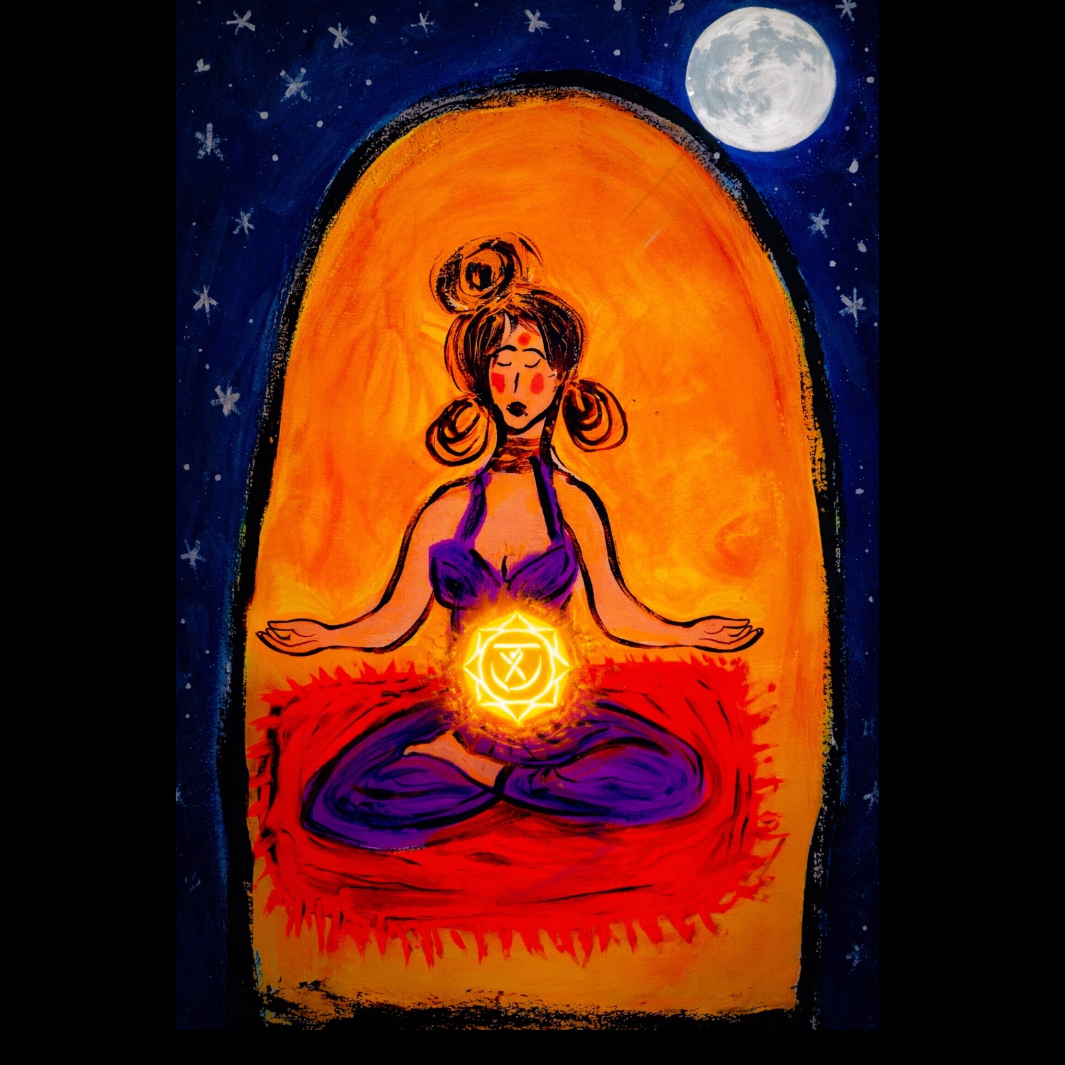 Ambient world / devotional with warm, radiant energy, Slightly more rhythmic and uplifting (~80–95 BPM), Soft but confident female vocals, Gentle pulsing percussion (hand drums, light rhythm), warm bass, golden synth pads, subtle strings, Sunlit, empowering, steady—not aggressive, Expansive but grounded, Mantra-based chorus that builds gently