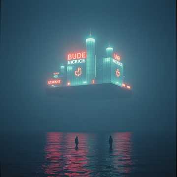 Minimalist Ethereal Drone, pure high-frequency sine waves, shimmering "divine" data-streams, a fading collective heartbeat that eventually stops, leaving only the cold wind of the city