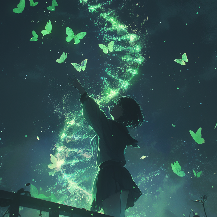 Mid-tempo Japanese post-hardcore with post-rock influence, tempo 140 bpm, Female Japanese vocal only, emotional and dynamic, moving from whispered verses to soaring choruses, Verses feature clean delay-driven guitar arpeggios, sparse tom hits, and bass pedal tones, evoking fragile space, Choruses expand with layered distorted guitars, octave leads, and doubled vocals for dramatic lift, Drums alternate between steady beats and half-time accents with dynamic crashes, Bass provides warm low sustain with light distortion, anchoring harmony, Guitars shift between shimmering arpeggios, ringing chords, and tremolo-picked figures for tension, Electronics minimal: faint glitch textures, reversed tones, filtered sweeps, suggesting distortion of memory, A recurring two-bar guitar motif reappears throughout, slightly altered each time to mirror history repeating