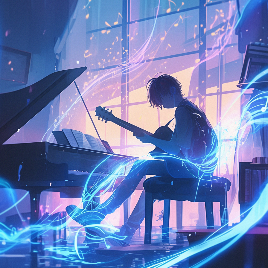 Mid-tempo Japanese post-hardcore with post-rock influence, tempo 148 bpm, Female Japanese vocal only, fragile yet powerful, alternating whispered verses and soaring belts, Verses feature clean delay guitar arpeggios and sparse piano chords, evoking empty music room atmosphere, Choruses explode with distorted guitars, octave melodies, and layered vocal doubles, emphasizing unresolved dissonance, Drums steady but dynamic, syncopated snare hits, rolling tom fills, and dramatic crash bursts, Bass distorted, sustaining pedal tones beneath shifting harmonies, Guitars alternate between delicate arpeggios, dense chord walls, and short tremolo figures, often using dissonant intervals, Electronics minimal: reversed piano samples, filtered noise, glitch fragments, adding tension, A recurring two-bar guitar+piano riff returns each cycle, gradually thickening, symbolizing echoing resonance