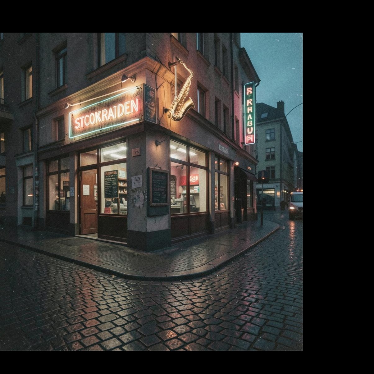 One single rapper, nostalgic swedish rap verses in a Stockholm dialekt, and english rap verses in a Dublin dialect, baryton sax riffs, clarinet stabs, snare drum rimshots, bass drum thumps, dirty crash cymbal, double-time swing, chopped streetband groove, chaotic jazz funk, acoustic jazzfusion breakbeat, hip hop, 168 BPM
