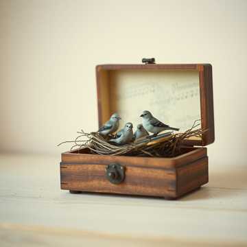 Soft ambient soundscape, feather-light pads and distant field-recorded birdsong textures, Gentle piano motifs drift in and out; airy mallet tones glimmer like wingbeats, Very low-key dynamics, wide stereo field, and long reverbs that blur edges into a calm, weightless haze, Ideal as a quiet, unobtrusive bed of sound, ambient, loud