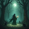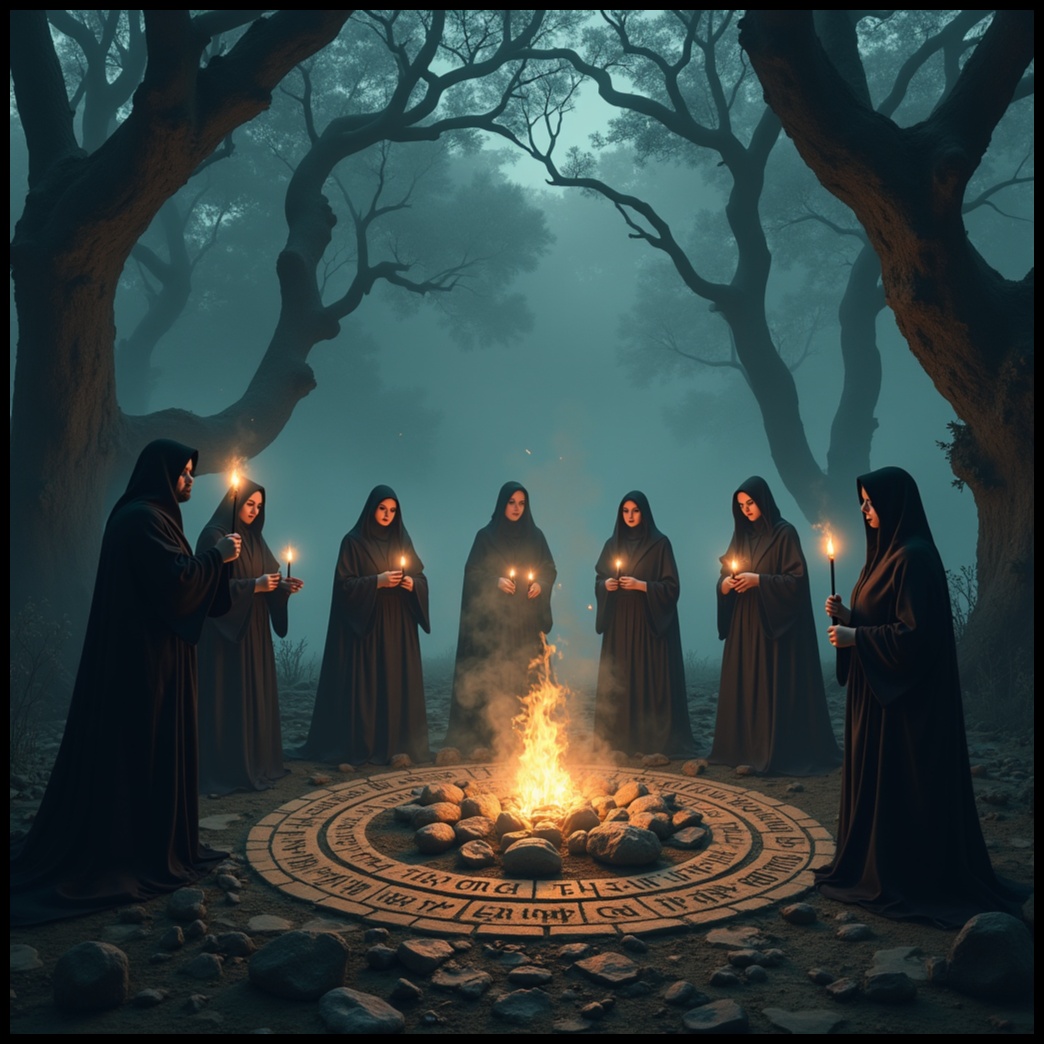 Dark Fantasy, Cinematic Horror, Neo-Medieval, Gothic Orchestral, Ambient Dark Folk, Ominous, Haunting, Mysterious, Ethereal, Dark Strings, Ethnic Drums, Whispering Vocals, Ritual Percussion, Low Drones, Creeping Pads, Witch’s Ritual, Cursed Forest, Pagan Spirits, Ancient Evil, Moonlit Graveyard
