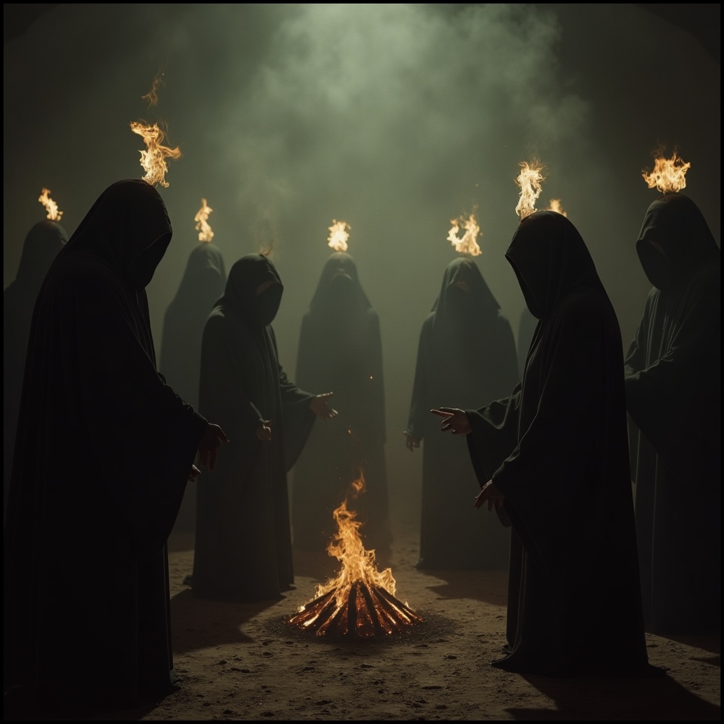 dark ritual ambient, horror score, female screaming, female whispering, mysterious chanting, ritual recitation, no melodic singing, possessed ritual, pagan ceremony, demonic hysteria, chaos, experimental percussion, atonal bowed strings, distorted drones, primal drums, supernatural horror, gothic atmosphere, psychological tension, intense vocal performance, ecstatic ritual energy, ancient language chanting, infernal invocation, cinematic soundscape, raw madness, screams and whispers only, ominous ambience, cursed forest, burning altar, trembling fear, no melody, no opera vocals, screaming, recitation, no melodic singing, ‑vocals, ‑female vocals, ‑choir, ‑ethereal, ‑opera, ‑lament, ‑singing